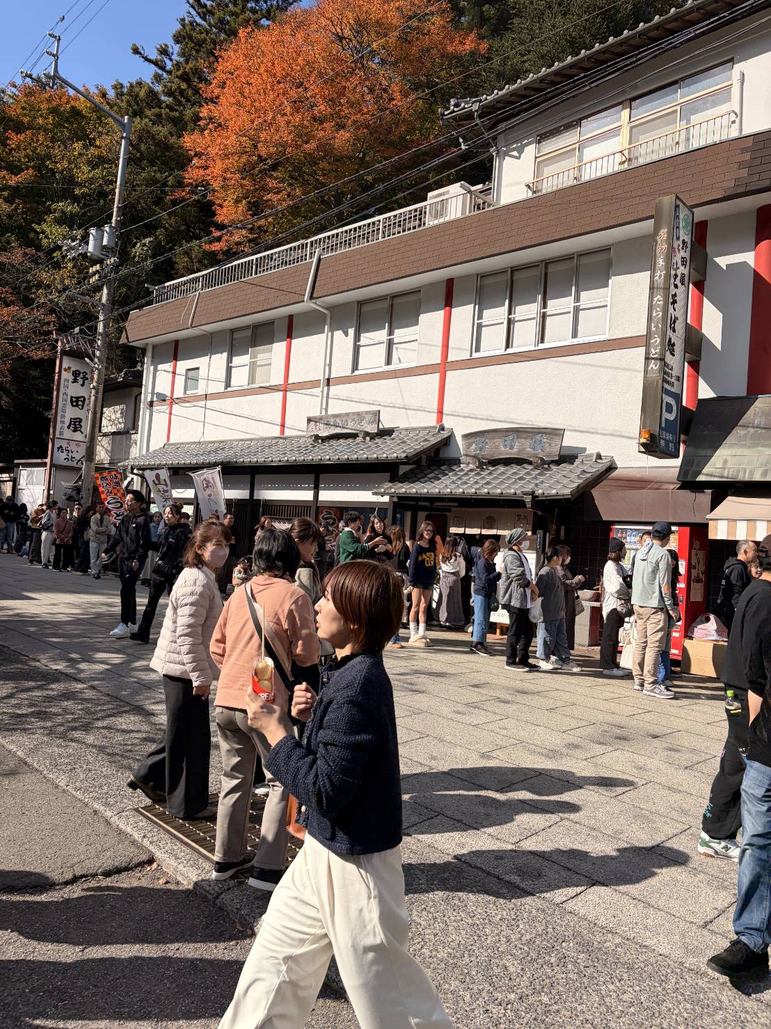 紅葉をかねての参拝と食事でお店の周りは大行列で