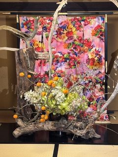 河野メリクロン様提供の蘭の花(シンビジウム)、大谷焼の花器等地元企業の協賛と、市役所並びに観光協会職員の皆様のご努力で毎年見事な生け花を鑑賞できることは、本当に有難いことです。